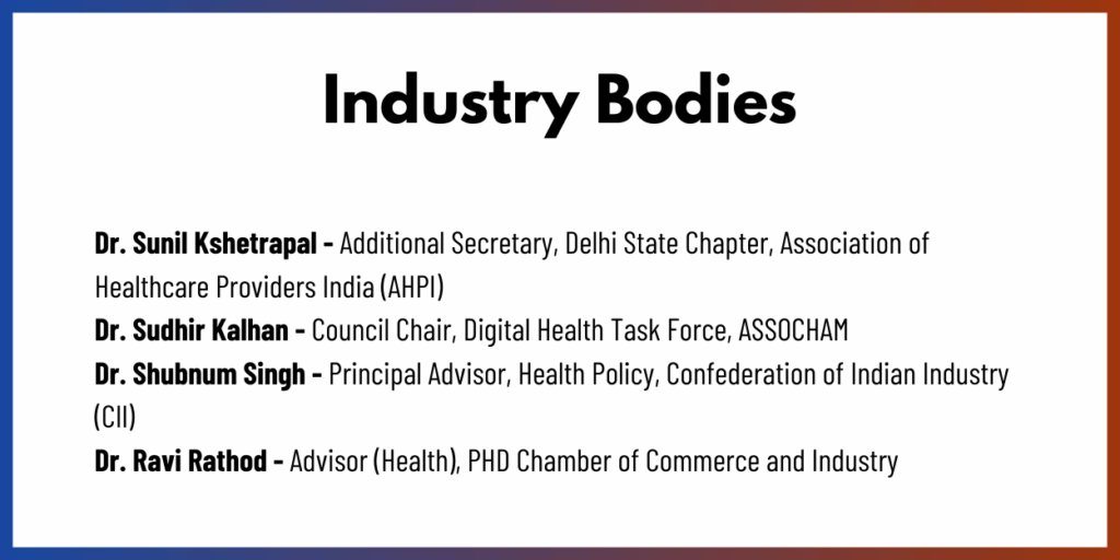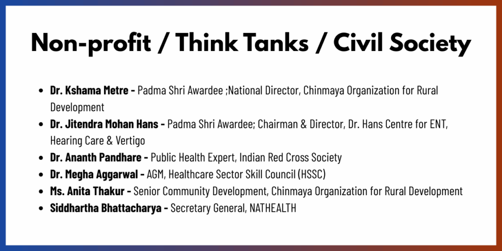 - Hospital and healthcare system leadership Industry and skilling bodies